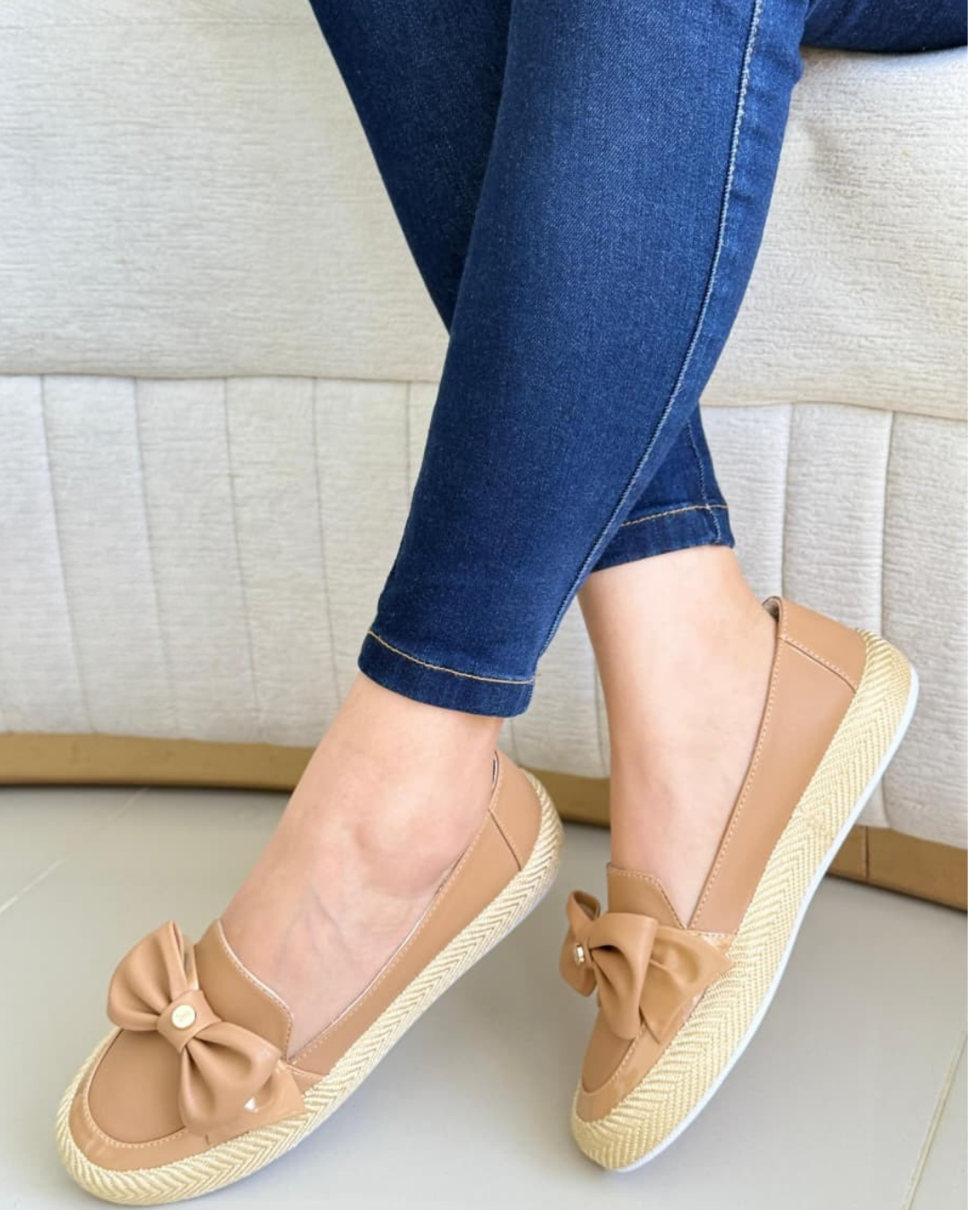 tenis con suela confort de cuerina y yute , cuenta con costuras internas y plantilla confort